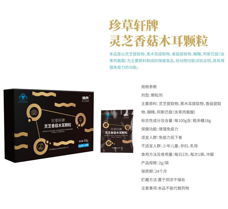 珍草轩牌灵芝香菇木耳颗粒